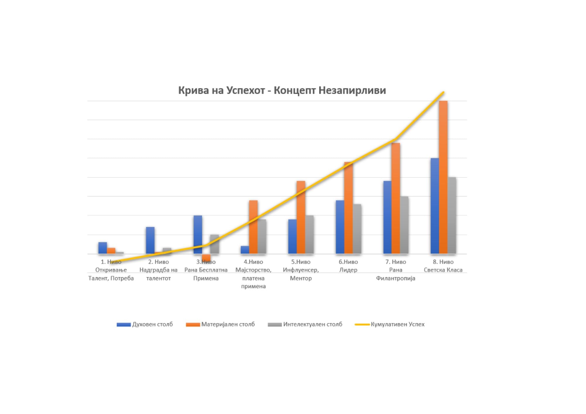Секое дете поминува низ осум фази на раст. Од откривање на талентот, преку учење, примена и натпревар, па сè до фази кога самото дете станува ментор, лидер и инспирација за други. Процесот е јасно структуриран и овозможува постепено градење на самодоверба, идентитет и влијание, со постојана поддршка од наставници, родители и ментори.